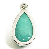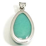 新宿銀の蔵 AAAAAAAグレード ティアドロップ型(雫型)・アマゾナイトシルバーペンダントトップ 価格: 8,100円 レビュー評価: レビュー数: 非常に綺麗な7Aグレードのアマゾナイトを使用した、涙型のペンダントトップです。 ガラス質の光沢とターコイズにも似た、鮮やかな美しい青緑色をお楽しみ頂けます。 石表面にはムーンストーンに見られるシラーのような美しい輝きもわずかに見る事ができます。