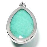 新宿銀の蔵 AAAAAAグレード ティアドロップ型(雫型)・アマゾナイトシルバーペンダントトップ 価格: 11,000円 レビュー評価: レビュー数: とても綺麗な6Aグレードのアマゾナイトを使用したペンダントトップです。 ガラス質の光沢とターコイズにも似た、鮮やかな美しい青緑色をお楽しみ頂けます。 不透明な石のためあまり目立ちませんが 光にかざす事で、ムーンストーンに見られるシラーのような美しい輝きを石表面に見る事ができます。